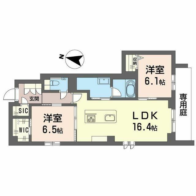 | 間取り | 2LDK(LDK16.4帖 洋室6.5帖 洋室6.1帖) | 主要採光面 | 南 |