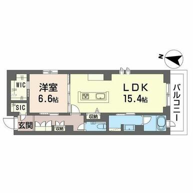| 間取り | 1LDK(LDK15.4帖 洋室6.6帖) | 主要採光面 | 南 |