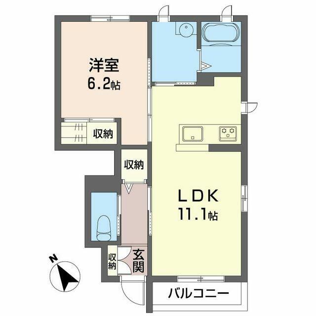 | 間取り | 1LDK(LDK11.1帖 洋室6.2帖) | 主要採光面 | 南西 |